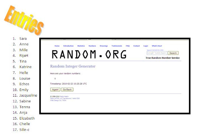 Jeg har brugt Random.org til at finde vinderen. Jeg gav jer et nummer hver især og så trak den ellers lod for mig. Nr. 8 kom ud. Dejligt nemt og det så sådan her ud: