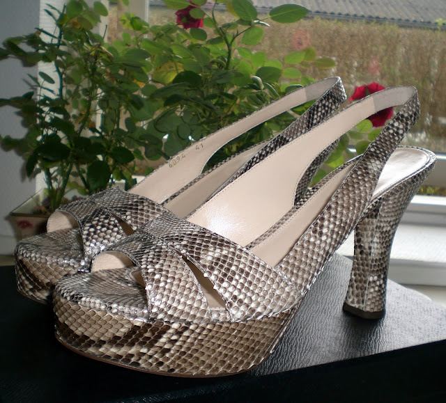Jeg er som regel altid heldig på Forum med sko/støvler, fordi jeg ikke bruger en meget gængs størrelse, så der er tit gode kup at gøre. Denne gang blev det, bl.a., til de her suværent smukke Prada heels i python! Oh…..milde sko-gud, som tilsmilede mig i går – jeg bøjer mig i støvet 🙂