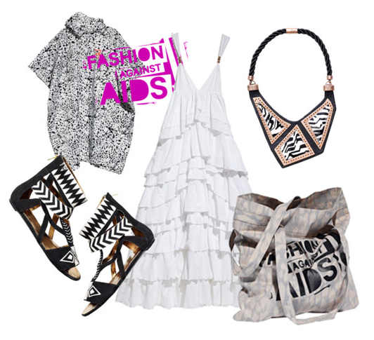 Jeg fik vist slet ikke vist, hvilke sager jeg har købt fra HM’s “Fashion against AIDS” kollektion, så hermed en lille kollage. Faktisk har jeg købt to ting til – nemlig en sovepose og et par af de der haremsbukser i den rødlige udgave, men jeg er ikke helt sikker på om de er keepers. Har på fornemmelsen at benlængden ikke helt er go’ nok, men nu må vi se, når de ankommer.