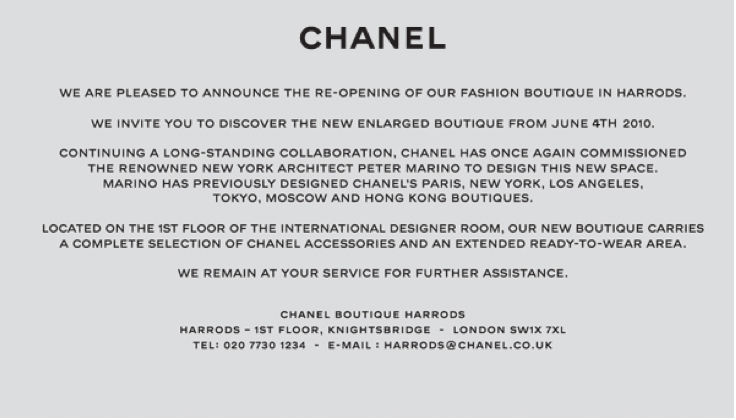 …som man åbenbart skal være i i øjeblikket. Ikke nok med den nye superlækre butik, som LV har åbnet – nu åbner Chanel også dørene til ny renoveret shop-in-shop i Harrods. Wanna go! Wanna go – NOW! 🙂