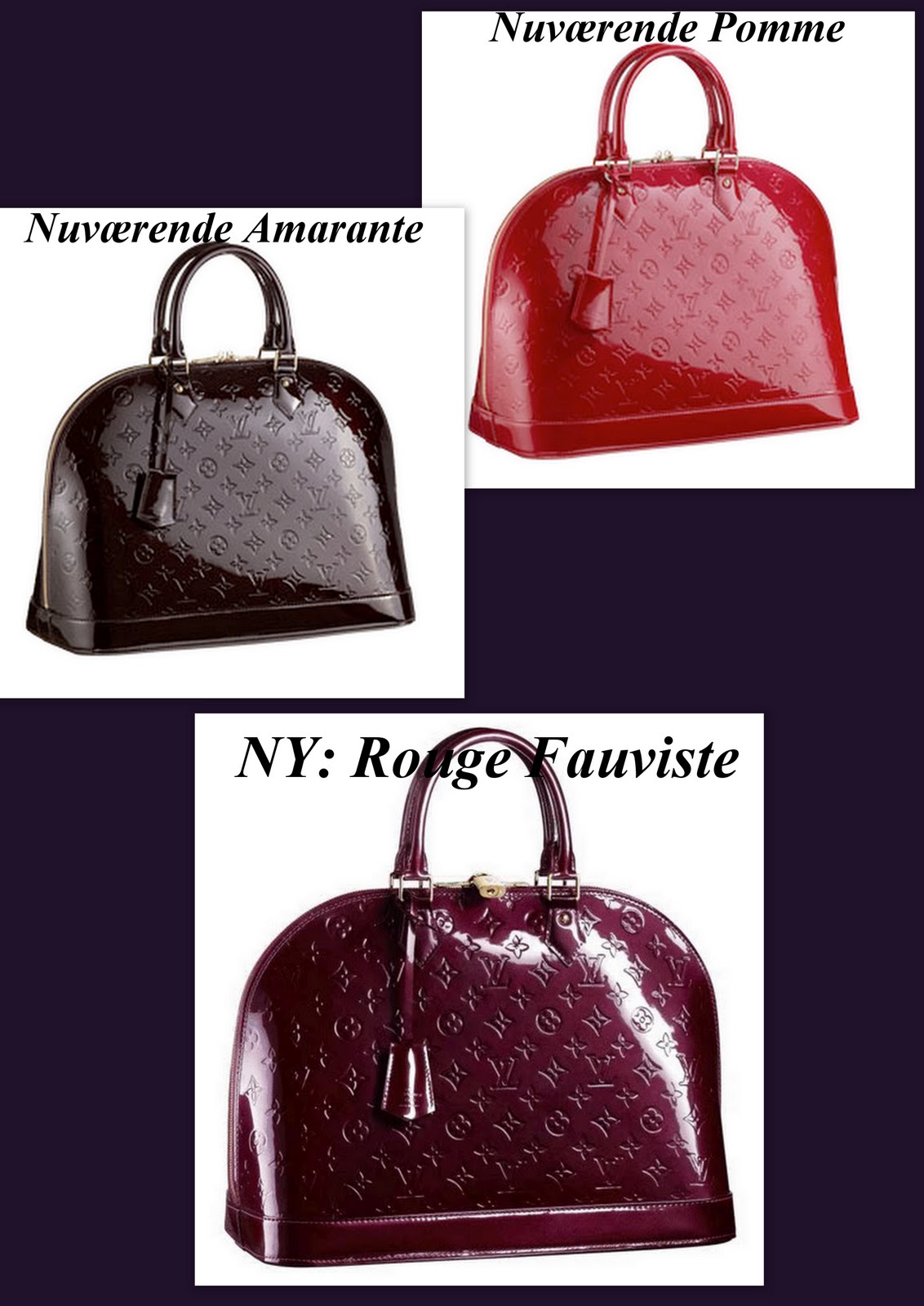 Der har været spænding i LV-verdenen vedr. de nye vernisfarver og det har tilsyneladende været sværere denne gang at få vristet oplysningerne ud af guruerne som ved alt! 🙂 NÅ, men nu ved vi at den nye farve (som muligvis erstatter Pomme d’amour nu og her og Amarante på sigt) hedder Rouge Fauviste!
