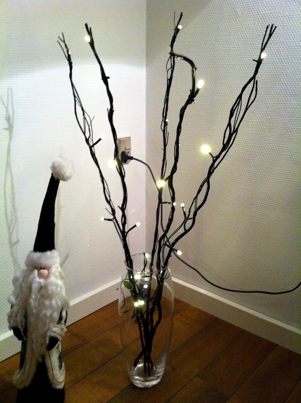 Jeg har udover pakkedims også købt lidt ekstra julehygge – lysgrene og lidt julepynt. Kunne slet ikke stå for alle de fine limefarvede sager hos Søstrene, så på trods af at jeg slet ikke har brug for mere gejl til træet, så flyttede der altså nye glasvæsner ind i dag. (Bemærk: ingen nisser! Uf….haha).